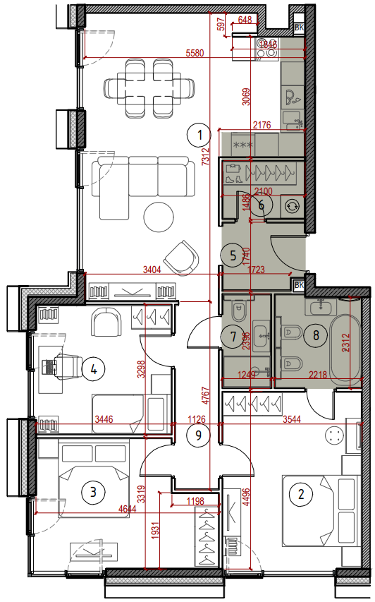 Трехкомнатная квартира 92,0
