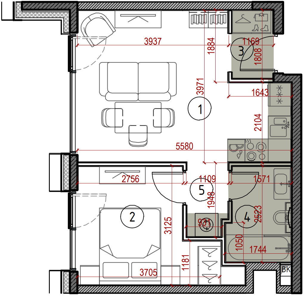 Однокомнатная квартира 37,0 м²