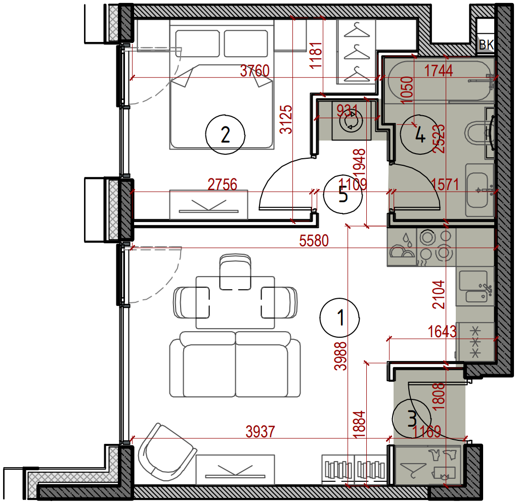 Однокомнатная квартира 37,0