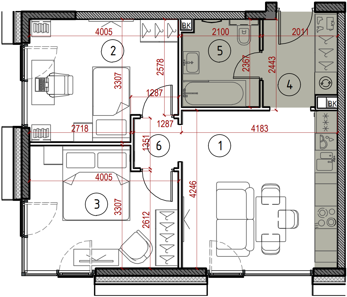 Двухкомнатная квартира 53,6 м²
