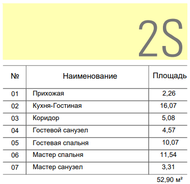 Двухкомнатная квартира 52,9 м²
