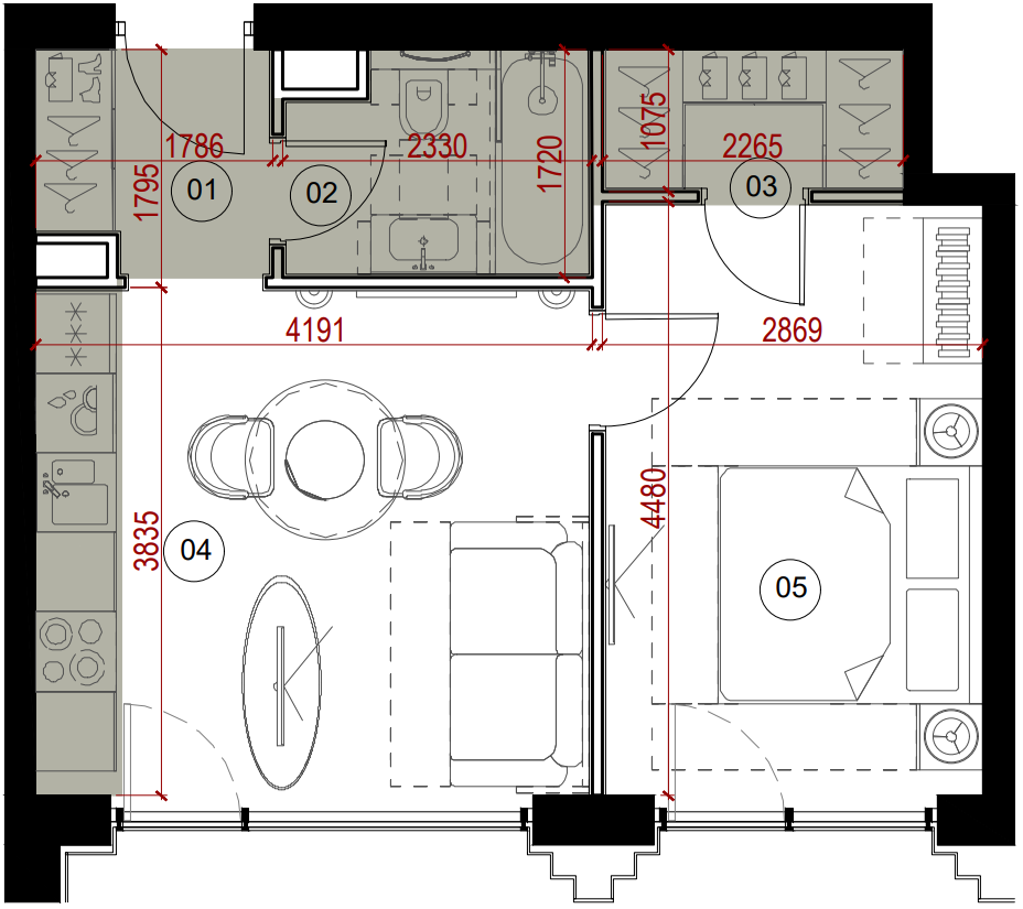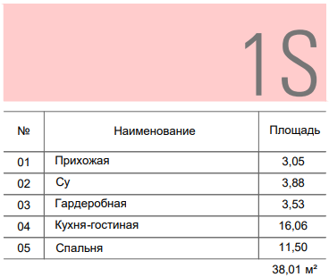 Однокомнатная квартира 38,01 м²